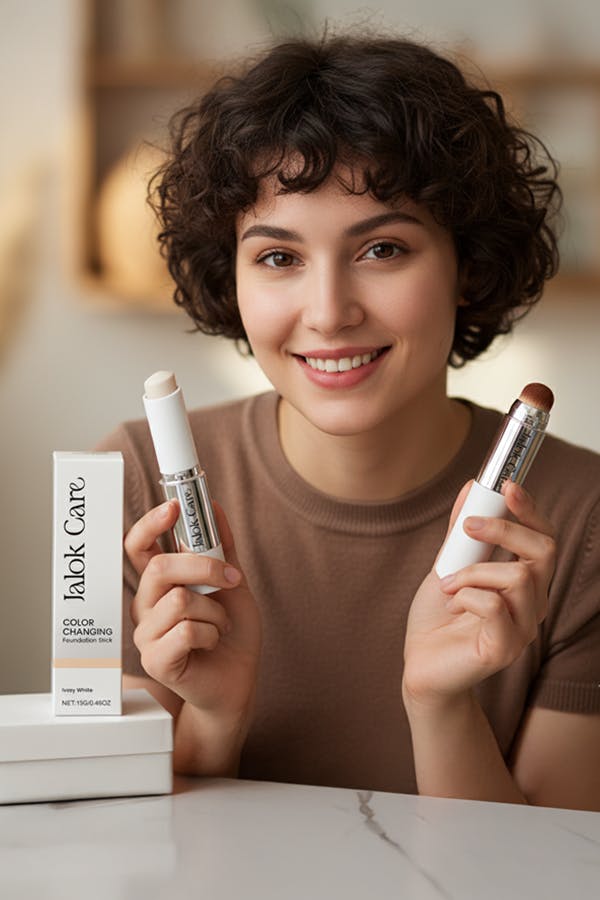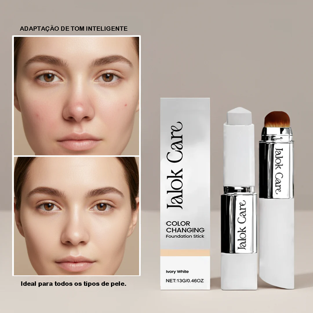 A maquilhagem tradicional pode ser pesada, complicada e deixá-la na dúvida sobre o tom certo. A base em stick 2 em 1 com mudança de cor da Jalok Care adapta-se instantaneamente ao seu tom de pele, proporcionando uma hidratação leve e uma cobertura impecável num único passo.